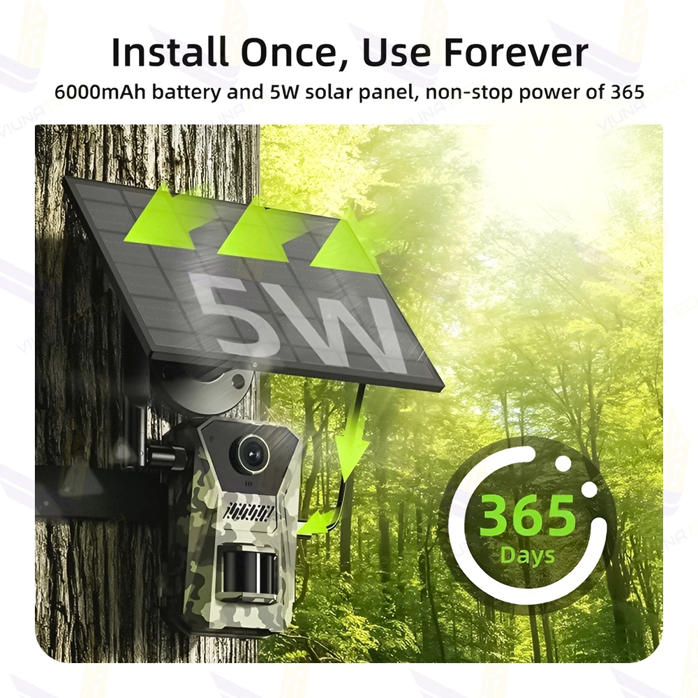با پنل خورشیدی و باتری ۶۰۰۰ میلیآمپر، این دوربین میتواند چندین ماه بدون شارژ دستی کار کند.