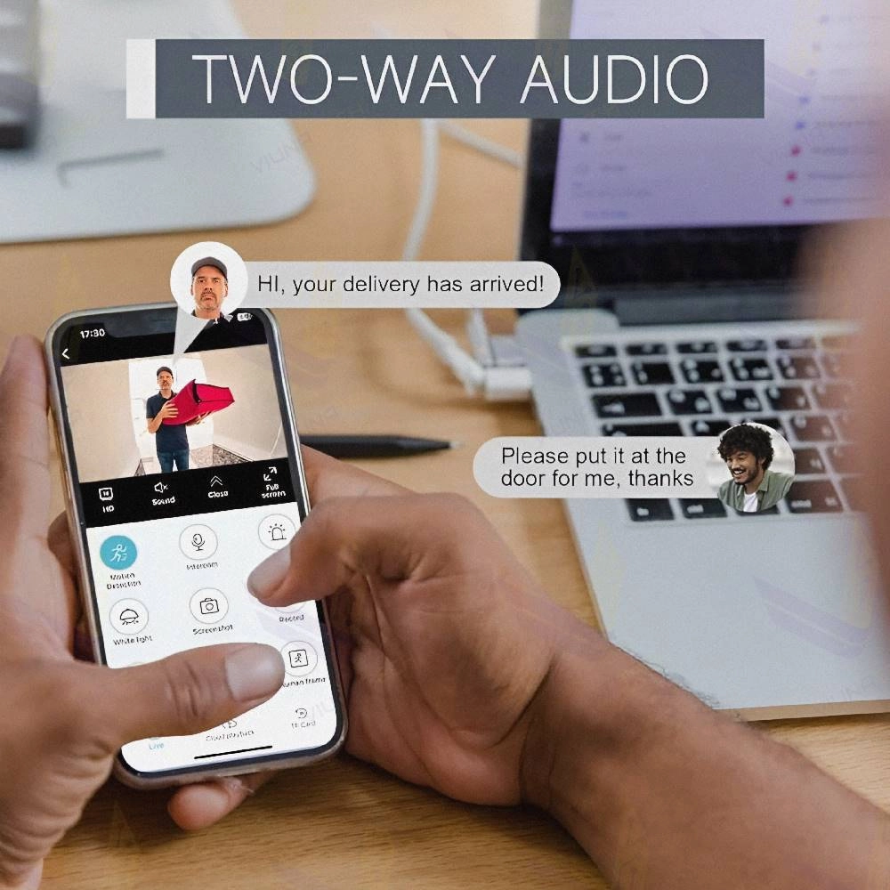 - مکالمه دو طرفه: با میکروفون و اسپیکر داخلی، به راحتی با افراد حاضر در محل صحبت کرده و صدای محیط را به صورت زنده بشنوید.
