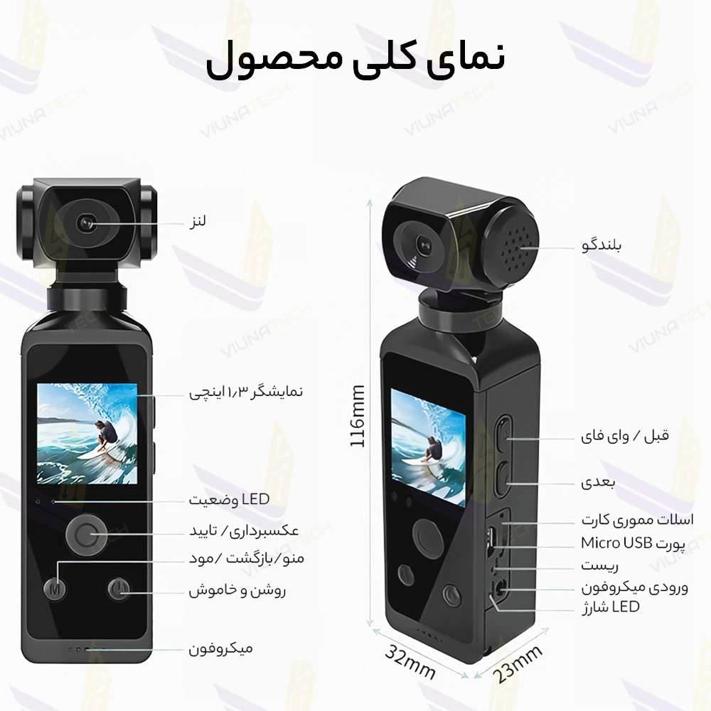 مشخصات فنی دوربین ورزشی اکشن کمرا ضد آب P1 5K Ultra HD